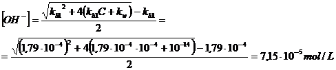 La prima costante di idrolisi ha un valore di circa quattro ordini di grandezza superiore alla seconda (kh1 >> kh2). Possiamo dunque trascurare il secondo equilibrio di idrolisi e trattare il primo come un equilibrio di dissociazione di una base debole al quale applicheremo la formula risolutiva semplificata più opportuna.