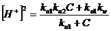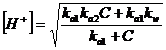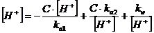 e, ricordando che il sale è completamente dissociato e quindi che [Na+] = C la quinta si ricava infine dal bilancio di massa. utilizzando le 5 equazioni ed effettuando le opportune sostituzioni in funzione della concentrazione di ioni H+ si ottiene