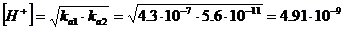 e lo sostituiamo nella relazione di equilibrio della seconda dissociazione acida