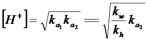 Se ora assumiamo che, sia l'equilibrio di idrolisi che quello di dissociazione acida, avendo in genere costanti piccole, siano molto spostati verso sinistra, la concentrazione di HCO3- sarà prevalente rispetto a quelle di CO32- e H2CO3