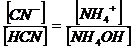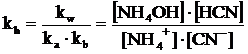 Come si può osservare si ottengono delle concentrazioni uguali per le specie dissociate (x = [NH4+] = [CN-]) e per le specie indissociate ( C - x = [NH4OH] = [HCN]) e quindi risulteranno uguali anche i loro rapporti