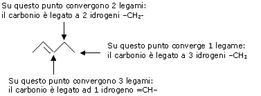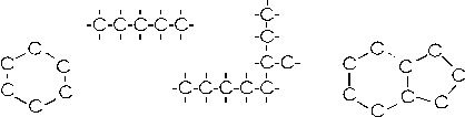 Nelle formule schematiche i vertici rappresentano gruppi CH2, CH o C a seconda che vi convergano rispettivamente 2, 3 o 4 legami (segmenti).