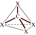 in questo caso i quattro legami sono tra loro equidistanti e formano l'uno con l'altro angoli di legame di circa 109°. Possiamo immaginare l'atomo di Carbonio al centro di un tetraedro con i quattro legami che puntano verso i vertici.