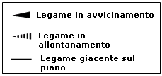 In queste condizioni le catene che si formano non hanno andamento rettilineo, ma a zig-zag. Se immaginiamo da esempio i legami Carbonio-Carbonio sul piano del foglio, i legami residui escono davanti e dietro il foglio. Per rappresentare la reciproca disposizione degli atomi e dei legami nello spazio si rappresentano i legami giacenti sul foglio come segmenti continui, i legami in avvicinamento (rispetto all'osservatore) come cunei pieni ed i legami in allontanamento come cunei tratteggiati.