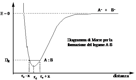 Consideriamo un sistema formato da due atomi, ciascuno contenente un elettrone spaiati. Quando la loro distanza è virtualmente infinita l'energia del sistema è data dalla somma delle energie dei due atomi separati (E = 0). Quando gli orbitali atomici entrano in contatto l'energia diminuisce, fino a raggiungere un minimo, dopodiché aumenta rapidamente tendendo all'infinito. La distanza alla quale l'energia è minima (re) è chiamata lunghezza di legame. L'energia che bisogna fornire al sistema per separare nuovamente gli atomi è chiamata energia di legame (DE) [Nota che l'energia di legame non corrisponde al valore minimo dell'energia, poiché gli atomi non stanno fermi alla distanza di legame re, ma vibrano attorno ad essa tra (re + x) e (re - x). La differenza di energia tra DE e il minimo è chiamata energia di vibrazione
