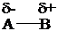 La nuvola elettronica è spostata verso l'atomo A, che viene ad assumere una parziale carica negativa, mentre sull'atomo B si crea una parziale carica positiva.