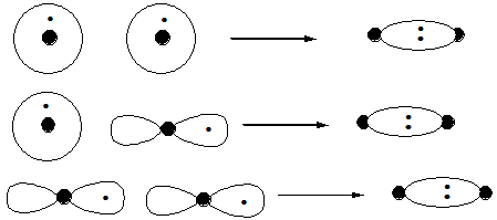 Quando gli atomi raggiungono la distanza di legame sovrappongono gli orbitali contenenti gli elettroni spaiati per formare un nuovo orbitale, centrato tra i due nuclei, nel quale si dispongono i due elettroni. La sovrapposizione è tanto migliore quanto più simili sono le dimensioni degli orbitali. La spinta alla formazione del legame deriva dal fatto che, una volta messi in compartecipazione, gli elettroni sono indistinguibili; formalmente entrambi gli elettroni appartengono a entrambi gli atomi. Questo consente agli atomi di colmare le lacune elettroniche e di raggiungere la configurazione del gas nobile (regola dell'ottetto).