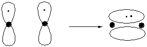La sovrapposizione di due orbitali p perpendicolari alla direzione di avvicinamento dei due atomi origina un orbitale localizzato sopra e sotto l'asse del nuovo legame. Il legame viene definito p. Gli elettroni del legame p, rispetto a quelli del legame s, risentono meno dell'attrazione dei nuclei. Sono quindi più mobili (polarizzabili). Il legame p risulta più debole del legame s