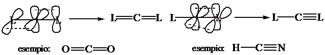 leganti L (due doppi legami) o di due legami p con uno dei due leganti L.