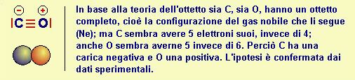 Fig.14.5 Situazione elettronica del monossido di carbonio CO in base alla teoria dell'ottetto |