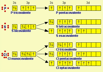 In questi casi sono infatti disponibili gli orbitali d e in questi orbitali 3d alcuni elettroni possono venire 'promossi' (dato che l'energia dei 3d è un po' superiore di quella dei 3p), così da permettere la formazione di un maggior numero di legami covalenti: