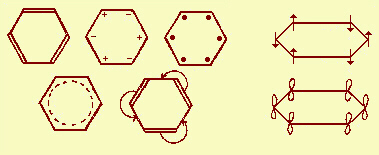 Fig.14.10 Alcune delle rappresentazioni attuali della struttura del benzene. |