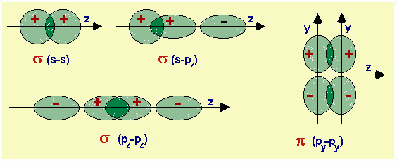 Il tipo o l'entità della sovrapposizione dipenderà, ovviamente, dalla forma degli orbitali atomici che possono interagire; è perciò importante ricordare la forma degli orbitali di tipo s, dei p, dei d, etc. e la loro simmetria.