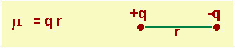 Fig.14.21 Momento dipolare μ. Esso è un vettore il cui modulo è dato dal prodotto della carica q per la distanza r tra i due baricentri delle cariche positive e negative. |
