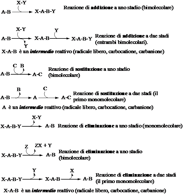Nei casi pił semplici, le reazioni possono avvenire in un unico stadio o in due stadi.