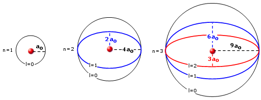 (ciò significa che nel secondo livello oltre ad una orbita circolare (l = 0), naturalmente di diametro maggiore della precedente, vi è anche un'orbita ellittica ( l = 1) indicata anche con la lettera 'p'.