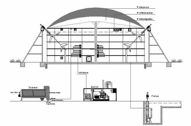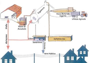 ( soprattutto metano), utilizzabile come biocombustibile. Esso fa funzionare un semplice motore, al quale è collegato un generatore di corrente elettrica.