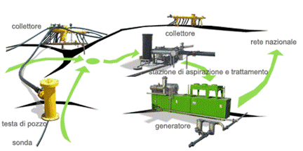 Attraverso una apposita condotta collegata con la copertura raccogligas del digestore, il gas prodotto e recuperato è avviato ad un impianto di cogenerazione, che bruciando il biogas produce energia elettrica e calore. Parte del calore prodotto viene recuperato ed utilizzato mantenere in temperatura il digestore. Infine il liquame in uscita dal digestore, ormai stabilizzato e deodorizzato, sarà accumulato in uno o più bacini di stoccaggio in attesa dell’utilizzazione agronomica.