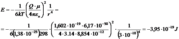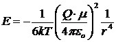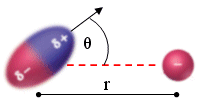 Per un dipolo stazionario l'energia di interazione con uno ione risulta inversamente proporzionale alla seconda potenza della distanza r e dipende dall'orientazione (angolo θ).