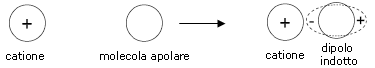 Si tenga presente che: un dipolo indotto si origina sempre nell'interazione tra uno ione ed una molecola (sia essa polare o no). Se la molecola è polare, la forza di attrazione dovuta all'interazione ione-dipolo indotto si somma a quella dovuta all'interazione ione-dipolo permanente.