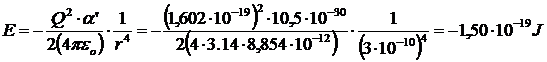 Ad esempio, a 25°C l'energia di interazione per uno ione monovalente (Q = 1,602 10-19 C) ed una molecola di tetraclorometano CCl4 con volume di poarizzabilità α' = 10.5·10-30 m3, alla distanza di 0.3 nm (= 3 10-10 m) è di