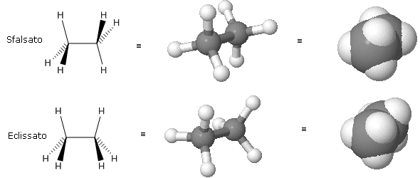 Per questo motivo la struttura dell'etano può assumere tutte le possibili posizioni intermedie tra due conformazioni limite: la sfalsata e la eclissata.