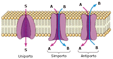 Antiporto: due molecole in versi opposti, una in ingresso e l'altra in uscita
