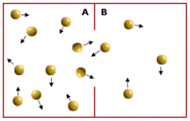 Le particelle si muovono in tutte le direzioni e quindi in ogni istante alcune passeranno dalla regione A alla regione B e viceversa. Ma poiché vi sono più particelle in A che in B vi sarà una maggior probabilità che si muovano da A verso B, piuttosto che da B verso A. Dunque, finché le particelle non saranno distribuite omogeneamente vi saranno più particelle che passano da A verso B che particelle che passano da B verso A. Ciò genera un movimento netto verso B (diffusione) che porta ad eliminare la distribuzione spaziale non omogenea.