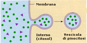 La pinocitosi si produce grazie alla formazione di minuscole introflessioni della membrana all'interno delle quali viene risucchiato il liquido da introdurre. La membrana successivamente si richiude liberando nel citosol la vescicola di pinocitosi