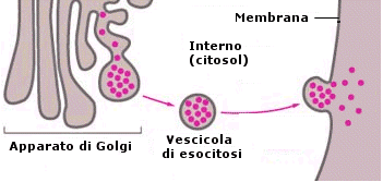 Il processo di esportazione è detto esocitosi ed avviene grazie alla capacità della cellula di avvolgere il materiale da espellere con una piccola porzione di membrana (vescicola di esocitosi) che si stacca dai sistemi interni di membrana (apparato del Golgi) e si va a fondere con la membrana plasmatica. In tal modo il contenuto delle vescicole di esocitosi viene versato all'esterno.