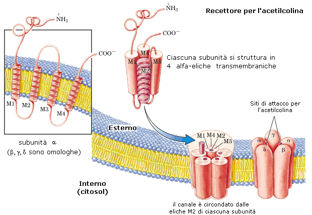 2) I recettori di membrana sono in genere anch'essi costituiti da molecole proteiche in grado di riconoscere e legarsi in modo specifico e selettivo a particolari sostanze chimiche che operano come segnali, principalmente nervosi (acetilcolina, adrenalina, serotonina etc) ed ormonali. Una volta legati, il complesso recettore-segnale innesca un meccanismo di amplificazione dovuto all'azione di un enzima legato al recettore che provoca una cascata di reazioni all'interno della cellula.
