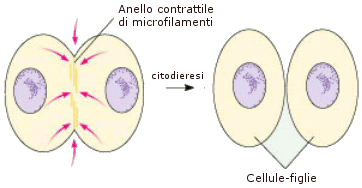 L'actina interviene anche durante la fase finale della divisione cellulare (citodieresi). La cellula eucariote animale si scinde nelle due cellule-figlie grazie ad un anello contrattile di actina (e di miosina, l'actina manifesta proprietà contrattili in presenza di miosina), posto appena sotto la membrana che strozza la cellula-madre nella regione equatoriale.