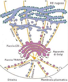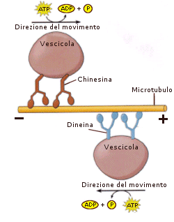 I microtubuli, come i microfilamenti, sono una componente del sistema citoscheletrico fondamentale per i movimenti cellulari. Essi costituiscono infatti una rete interna di binari sui quali possono spostarsi gli organuli e le vescicole cellulari grazie alla presenza di molecole di chinesina e dineina, proteine che fungono da "carrelli trasportatori", trasformando l'energia derivante dall'idrolisi di ATP in energia motrice Inoltre, sempre grazie alla dineina, microtubuli, disposti parallelamente, possono scorrere uno rispetto all'altro consentendo il movimento di ciglia e flagelli. Dineina e chinesina sono una classe di proteine associate ai microtubuli o MAP (Microtubule associated proteins). Dineina e chinesina sono MAP motorie, motori proteici, così chiamate perché usano ATP per guidare il trasporto di vescicole ed organelli o per creare forze di scorrimento tra i microtubuli.