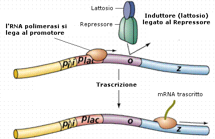 un promotore che precede i geni strutturali, costituito da una particolare sequenza di DNA che indica dove debba iniziare la trascrizione. Un promotore occupa una posizione adiacente al gene o al gruppo di geni di cui controlla la trascrizione e la sua funzione è quella di rappresentare una zona di riconoscimento e di attacco per una molecola di RNA polimerasi , l'enzima deputato alla sintesi di RNA messaggero (mRNA) a partire da uno stampo di DNA