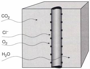 che impiegano gli agenti aggressivi, cloruri e anidrite carbonica, a penetrare
