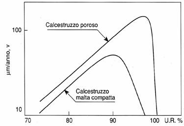 dell'umidità relativa del calcestruzzo avremmo un andamento a campana.