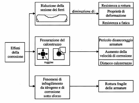 Il degrado di una struttura in c.a. è dovuta sia al degrado del calcestruzzo sia a quello dell'armatura che sono strettamente correlati perché se ho un cls fessurato, l'armatura è esposta agli agenti aggressivi, questo mi favorisce la corrosione, d'altro lato la corrosione dell'armatura provoca dei prodotti espansivi che nel cls provoca fessurazioni, in quanto inducono sollecitazioni di trazione nel calcestruzzo. Quindi i 2 fenomeni sono strettamente correlati, il primo che si innesca aiuta poi l'innesco del secondo.