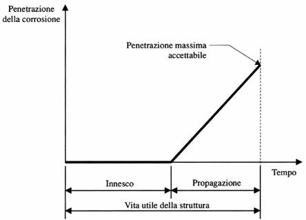 corrosione, in cui la penetrazione della corrosione è ancora zero, e il periodo di innesco dipenderà dal tempo