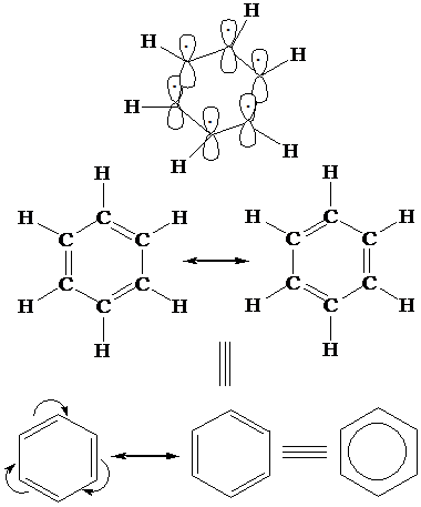 Il capostipite dei composti aromatici è il benzene [C6H6], costituito da un ciclo a 6 termini di atomi di carbonio sp2 contenenti 6 elettroni p (4n + 2; n = 1) delocalizzati su tutta la catena ciclica.