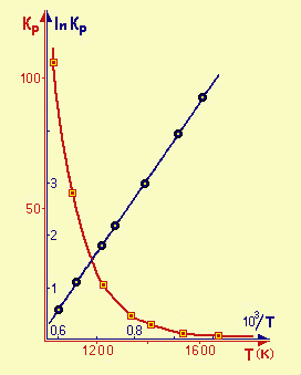Se determiniamo le Kp (espressa in atm-1/2) alle varie temperature T (K) e portiamo i dati in un diagramma Kp/T, otterremo una curva di tipo esponenziale; se proviamo però a rielaborare i dati trasformandoli in ln Kp e in 1/T, e riportiamo i nuovi dati in un diagramma ln Kp contro 1/T otterremo una funzione lineare.