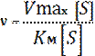 In cui Vmax è la velocità massima, che dapprima da segno di proporzionalità diretta con la concentrazione del substrato, successivamente diventa un valore costante. KM invece si chiama costante di Michaelis e corrisponde alla concentrazione del substrato a metà della velocità massima.