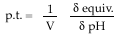 V indica il volume in litri; δequiv./V è pertanto la variazione infinitesima della concentrazione della base (o dell'acido) aggiunta.