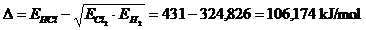 Calcoliamo l'elettronegatività del Cloro secondo Pauling, sapendo che l'energia del legame H2 è 436 kJ/mol, del legame Cl2 è 242 kJ/mol e del legame HCl è 431 kJ/mol.
