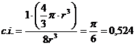 Il coefficiente di impaccamento (fattore di compattazione atomica) si ottiene come rapporto tra il volume degli atomi equivalenti (sfere contenute nella cella elementare, in questo caso 1) ed il volume della cella elementare.