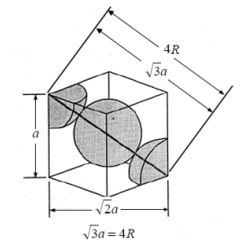 Poiché vi sono 3 atomi a contatto lungo la diagonale D della cella cubica, la diagonale è pari a 4 volte il raggio atomico