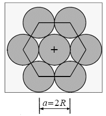 Il lato dell'esagono di base costituisce la costante reticolare a ed essendo costituito da due sfere a contatto vale