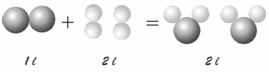 1 litro di Ossigeno + 2 litri di Idrogeno = 2 litri di vapor d'acqua