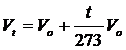 dove si osserva che il volume alla temperatura di t°C (Vt) è pari al volume alla temperatura di 0°C (Vo) aumentato di un valore pari a t/273 del volume Vo. Il volume a 0°C (Vo) varia di 1/273 per ogni variazione di 1°C. La relazione precedente può essere scritta