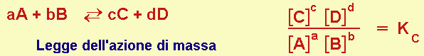 Poiché all'equilibrio le concentrazioni dei componenti sono costanti, sarà costante anche un loro rapporto, che esprime la legge dell'azione di massa (nel senso che se modifico la concentrazione di un componente, automaticamente si modificano le altre in modo che il rapporto generale Kc resti costante).