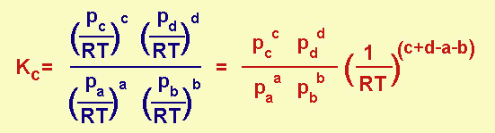 Infatti, poiché la concentrazione, per definizione è ni/V, dalla legge generale dei gas avremo che ni/V = pi/RT, e se sostituiamo nella Kc avremo: